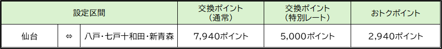 キャンペーン2:仙台↔新青森、片道5,000JREポイントで行ける!