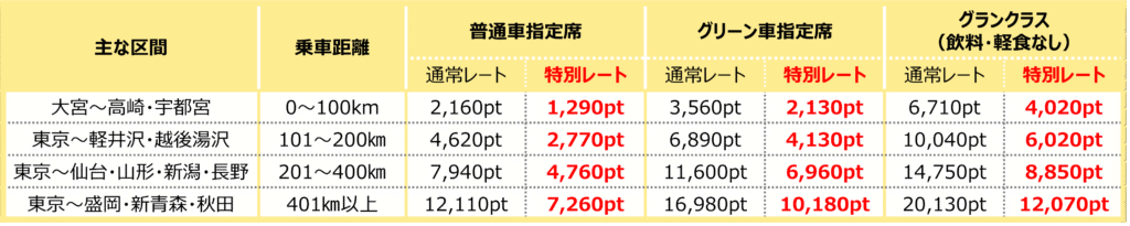 ③対象区間:「新幹線eチケット(JRE POINT特典)」の設定がある全列車・全区間